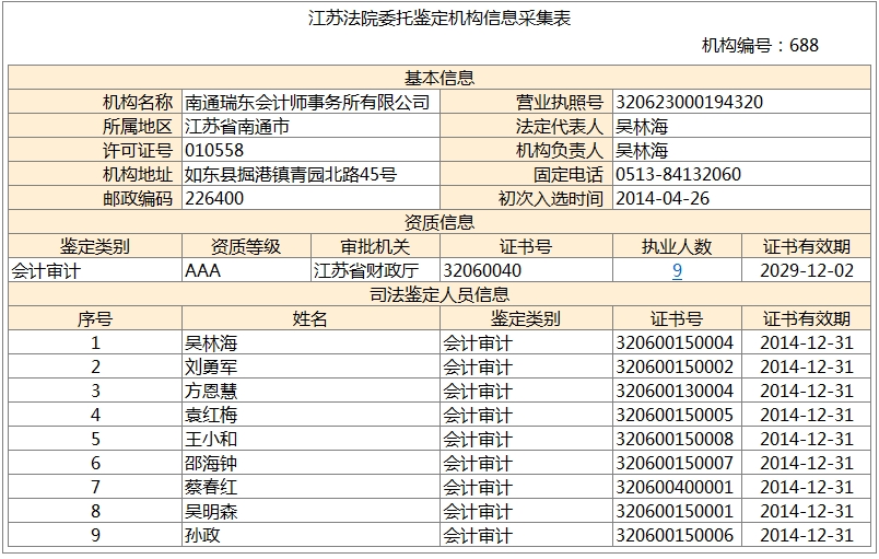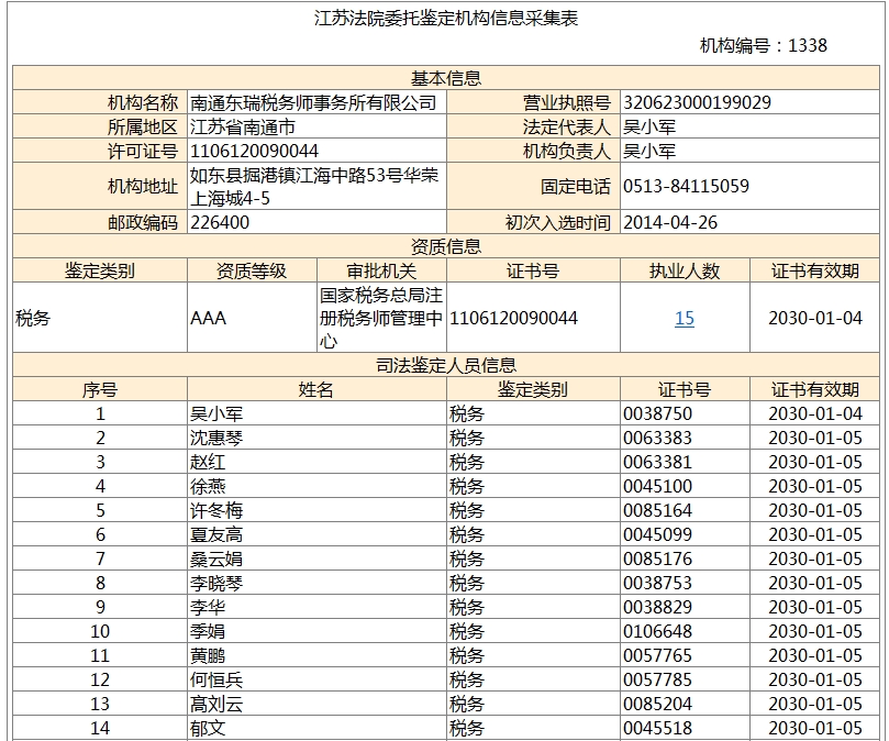 南通瑞東會(huì)計(jì)師事務(wù)所、南通東瑞稅務(wù)師事務(wù)所均進(jìn)入《國(guó)家司法鑒定人和司法鑒定機(jī)構(gòu)名冊(cè)》