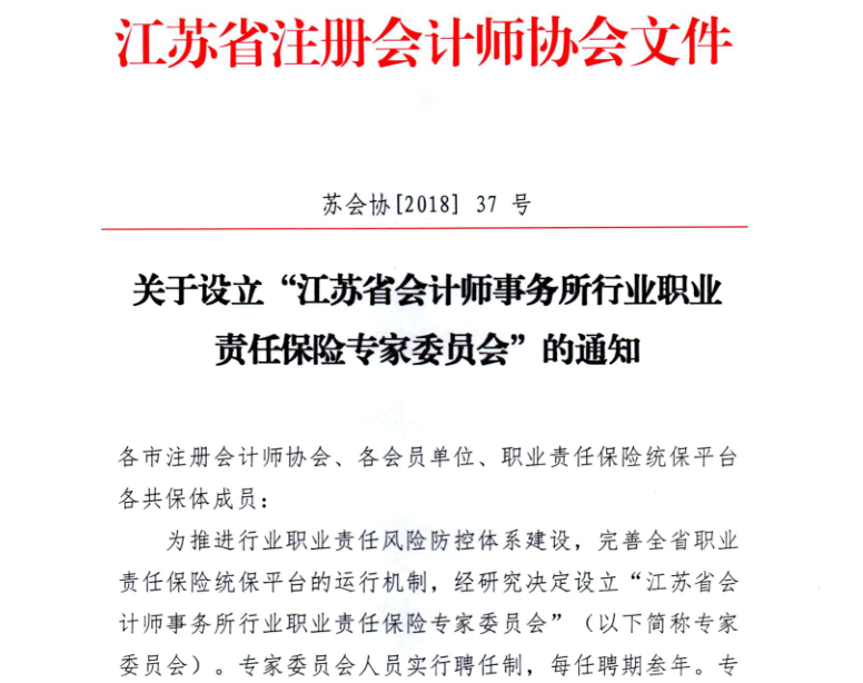 我所吳林海入選江蘇省會計師事務(wù)所行業(yè)職業(yè)責(zé)任保險專家委員會